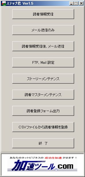 ストーリー番号順に自動的にメール配信を行うソフトです。